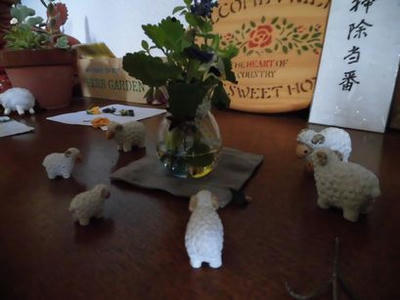 実際に、本当の羊を飼うのは諦めてくれましたが、こんな風に、羊の人形を集めて飾ったりしてるんです。